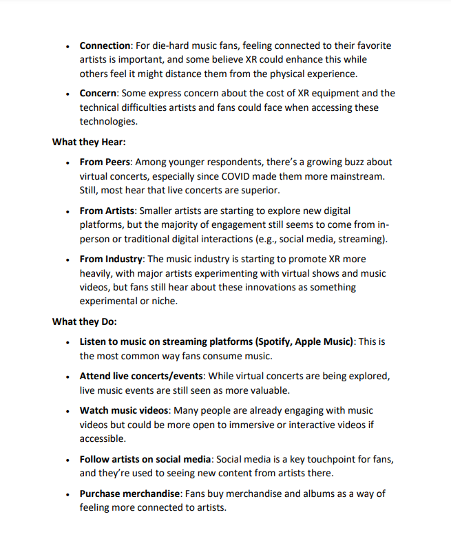 This project explores how Augmented Reality (AR) can revolutionize virtual concerts, creating unique and immersive experiences for young adults aged 18-34. The goal is to use AR to redefine what a concert can be, blending the physical and digital worlds to make events more interactive, exciting, and accessible.